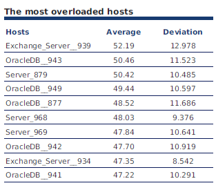 Description: Table displaying the most overloaded hosts