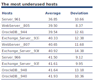 Description: Table displaying the most underused hosts