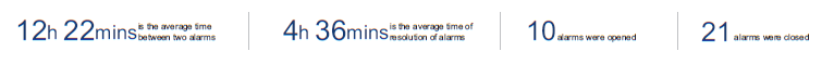 Description: Statistics on time between alarms, time of resolution, opened alarms and closed alarms for one host