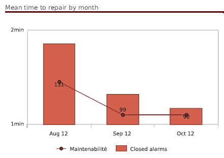 Description: Graph displaying the evolution of maintenability and the closed alarms for a host group, filtred on host categories