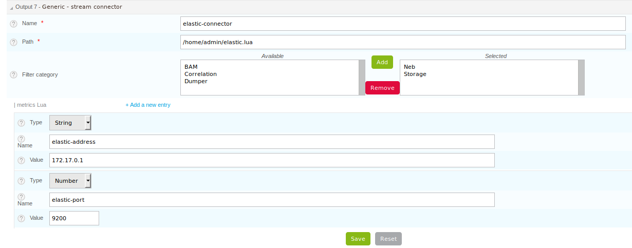 broker_log:set_parameters(level, filename)allows the user to set a log level and a file name. The level is an integer from 1 to 3, from the more important to the less one. The file name must contain the full path. And the file must be accessible to centreon-broker. If this method is not called, then logs will be written in the centreon broker logs.broker_log:info(level, content)writes a log information if the given level is less or equal to the one configured. The content is the text to write in the logs.broker_log:warning(level, content)works likelog_infobut writes a warning.broker_log:error(level, content)works likelog_infobut writes an error.